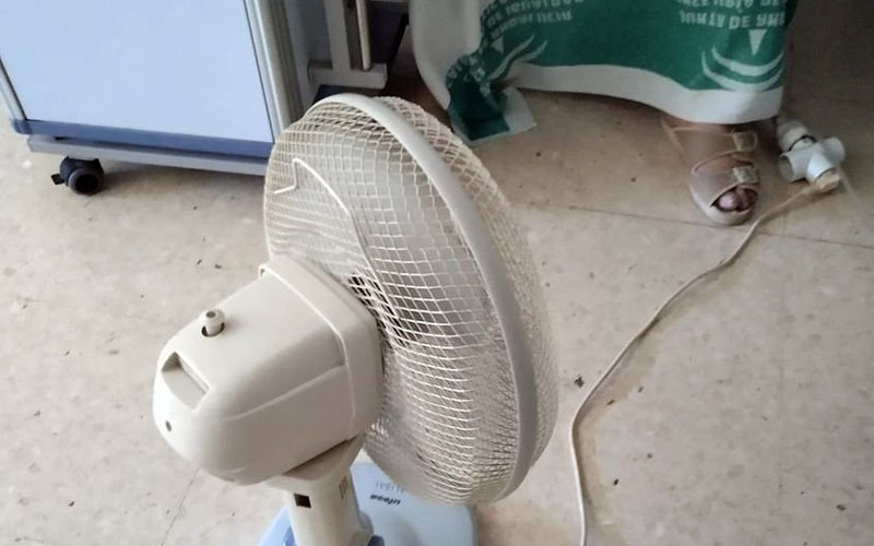 Por su parte, familiares de pacientes ingresados en el Hospital Universitario de Jaén ha recurrido al uso de ventiladores traídos desde sus propias casas para hacer frente a las altas temperaturas y al mal funcionamiento del aire acondicionado, que en algunas habitaciones «apenas se nota».