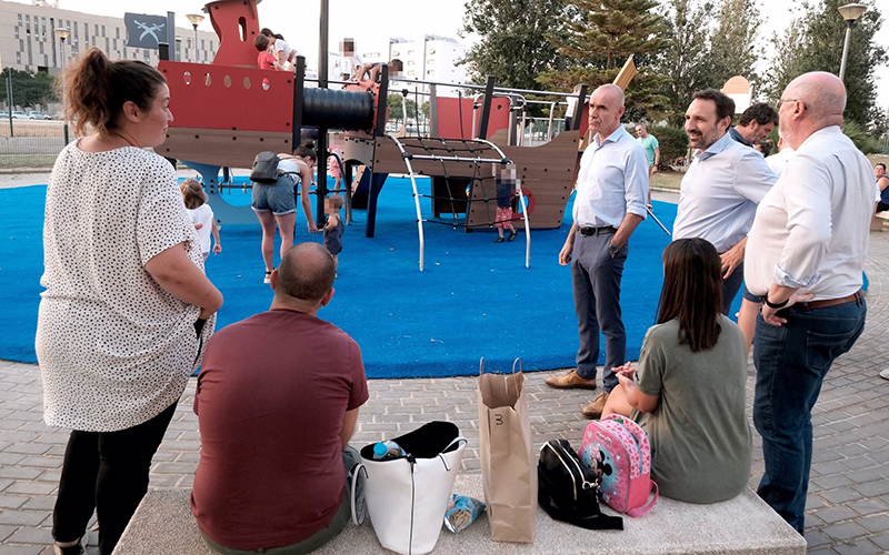 El alcalde de Sevilla, Antonio Muñoz, acompañado por el delegado del Distrito Este-Alcosa-Torreblanca, Juan Tomás Aragón, ha visitado los nuevos equipamientos instalados, donde ha explicado que esta zona «está poblada de muchas familias jóvenes, por lo que era primordial dotarla de instalaciones para los más pequeños». El Ayuntamiento ha acometido esta operación con la intención de «revalorizar los espacios destinados a los juegos infantiles, redistribuyendo los elementos de juego existentes entre el espacio circular de 14 metros de diámetro que hasta ahora existía y otro de nueva creación con forma de media luna».