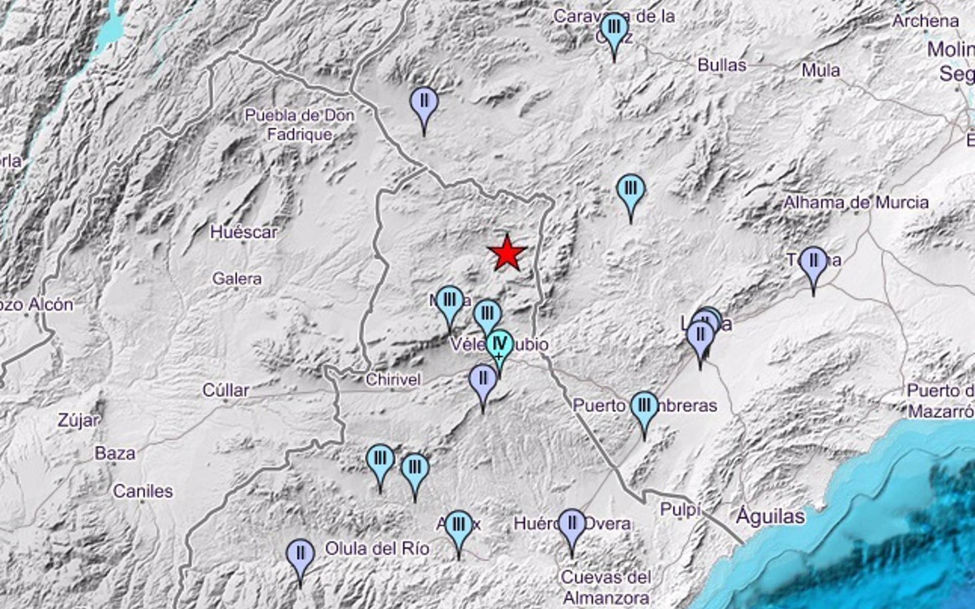 Según la revisión efectuada desde el IGN, Vélez-Rubio es donde el terremoto se ha sentido con mayor intensidad dentro de edificios, con una vibración moderada. De forma más leve, el seísmo se ha percibido en Albox, Oria, María, dentro de la provincia de Almería; y en Caravaca de la Cruz, Lorca y Puerto Lumbreras, en Murcia.
